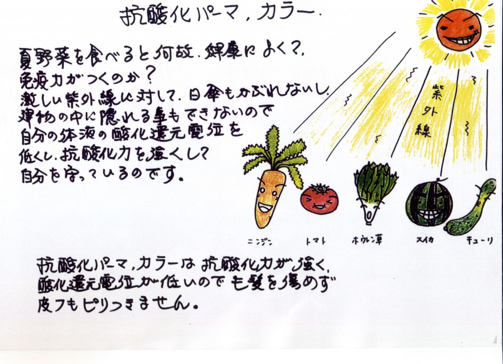 つまり、酸化還元電位の低い野菜の水分を摂って人間の酸化遍元電位を下げ、体調を整えているのです。